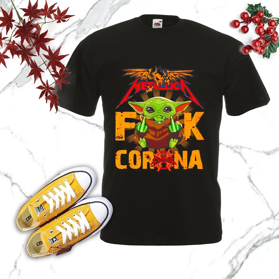 Baby Yoda Fuck Corona Metallica Shirt, Metallica Baby Yoda Fuck Fuck Corona Shirt, Baby Yoda And Covid 19 Shirt