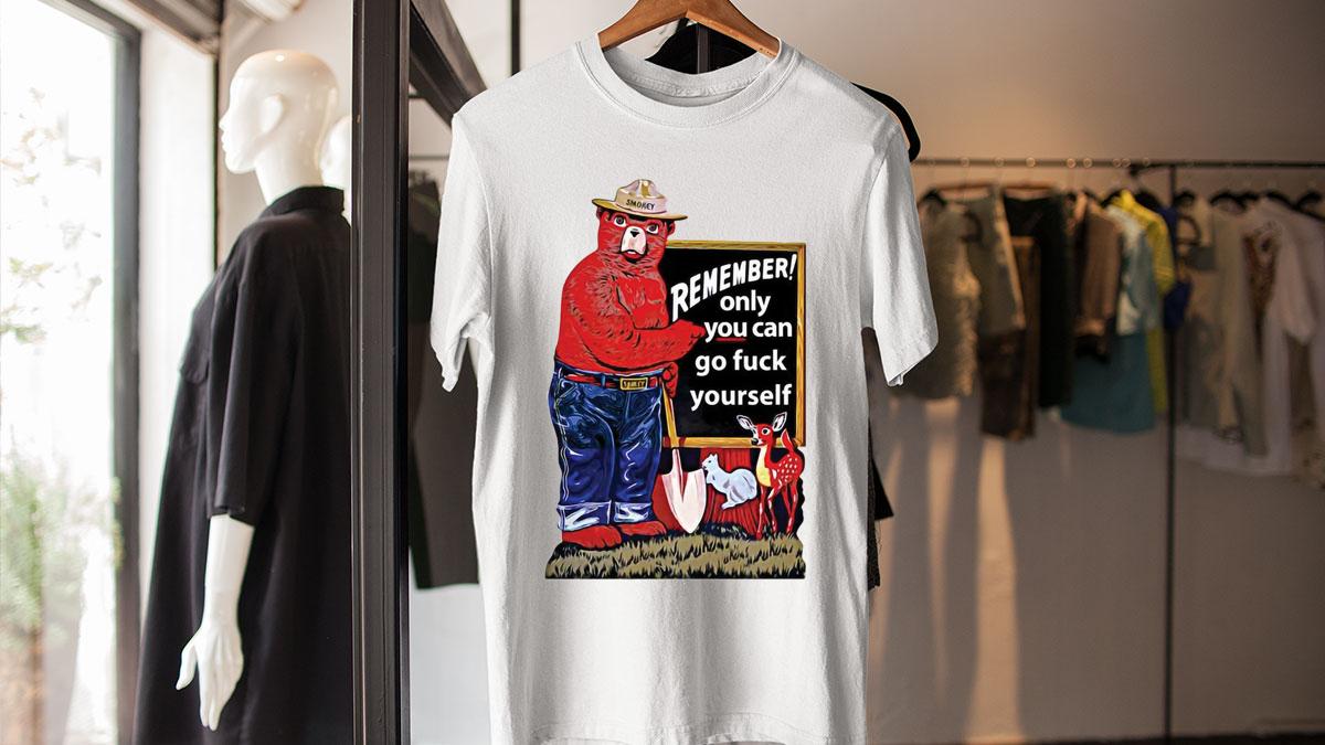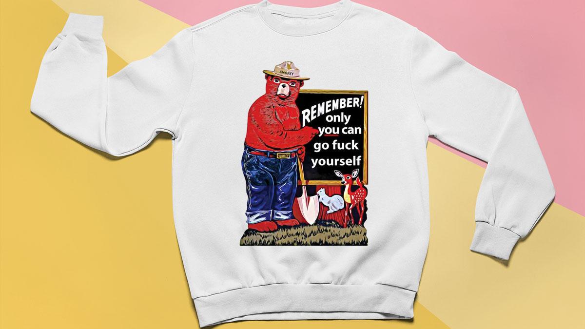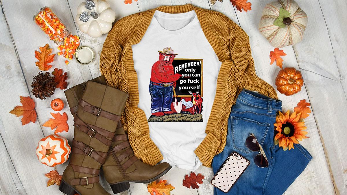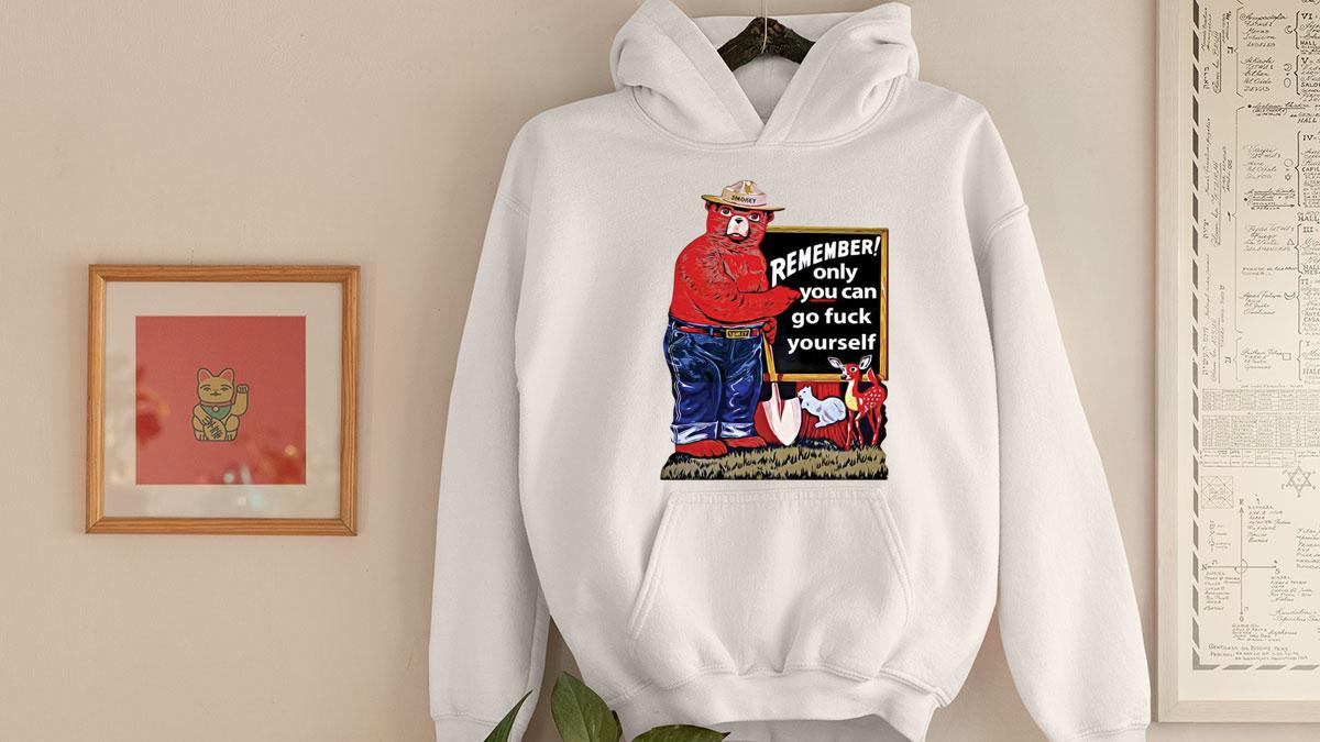 Looking for a quirky t-shirt? Our “Remember Only You Can Go Fuck Yourself Smokey Bear” shirt is perfect for those who love a good pun and who want to make a statement. Made from high-quality materials, this shirt is sure to become your go-to option. Get yours today!