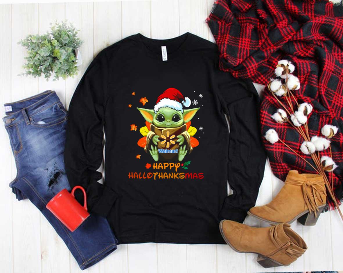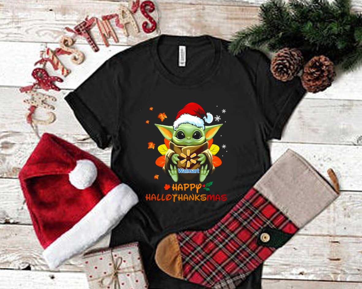 We hope you will own Santa Baby Yoda Hug Walmart Happy Hallothanksmas Shirt, Star Wars Baby Yoda Hug Walmart Shirt because the details such as the picture and the symbols on Baby Yoda, Hallothanksmas show your fashion style. Wear it and make people be attracted!